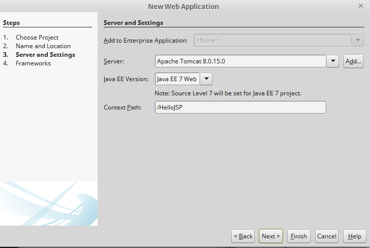 下的配置。在`/home/letian/.netbeans/8.0.2/apache-tomcat-8.0.15.0_base/conf/Catalina/localhost/HelloJSP.xml中有以下内容: